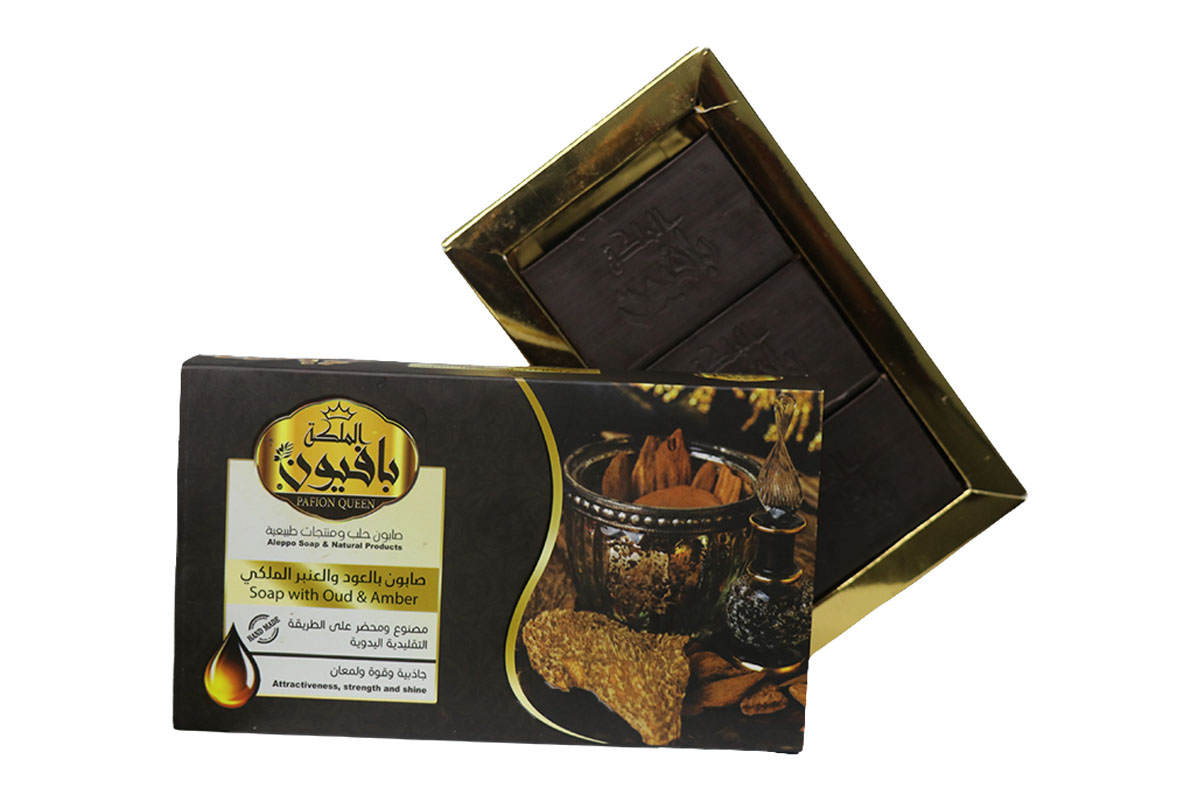 مصنوع من زيت الزيتون وزيت الغار وعود وعنبر